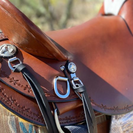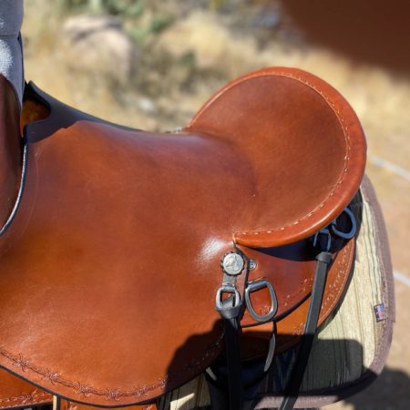 The saddle uses imitation fleece lined skirt which has been adopted based upon Steve’s 45 years of riding. Wool has no better wear than the imitation lining and offers a longevity equal to that of wool. Wool was originally used by cowboys because saddles were never paired with blankets.