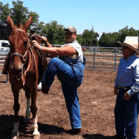 Steve ALWAYS recommends using a britchen and breast collar regardless if you’re on flat ground or mountains. You have to remember that you’re riding a mule bone structure (which is a donkey bone structure) and your saddle will go forward due to the donkey V shape in the shoulders – this explains the saddle riding forward.