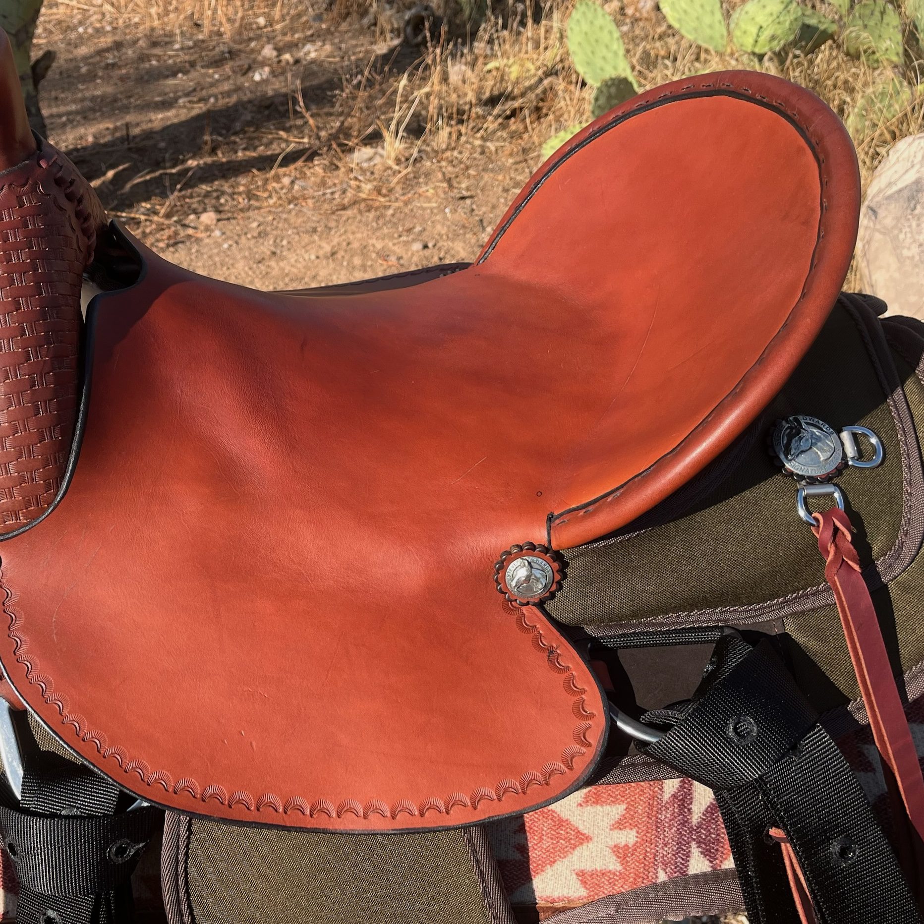 The Buckaroo Ultralight Saddle can be used with the stirrups you already own or you can add one of Steve’s stirrup design for an additional charge. If you’re looking for a recommendation, Steve always recommends (and rides with) Tapaderos as the safest stirrup you can own. Queen Valley Mule Ranch also offers a top of the line leather covered stirrup in multiple sizes.