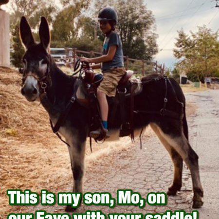 I couldn’t be happier with my complete saddle set up saddle, britchen and breast collar. My donkey went on her first ride with it without so much as a twitch. She was happy, forward moving, ears forward. Her body language told me that she was VERY comfortable with the saddle and gear. I found the saddle to be very comfortable and I cannot thank Steve enough for his time and effort getting me the right gear for my donk. It has made riding her a very pleasurable experience for both of us. I HIGHLY recommend Steves saddle and everything I have gotten from him has been of top quality.