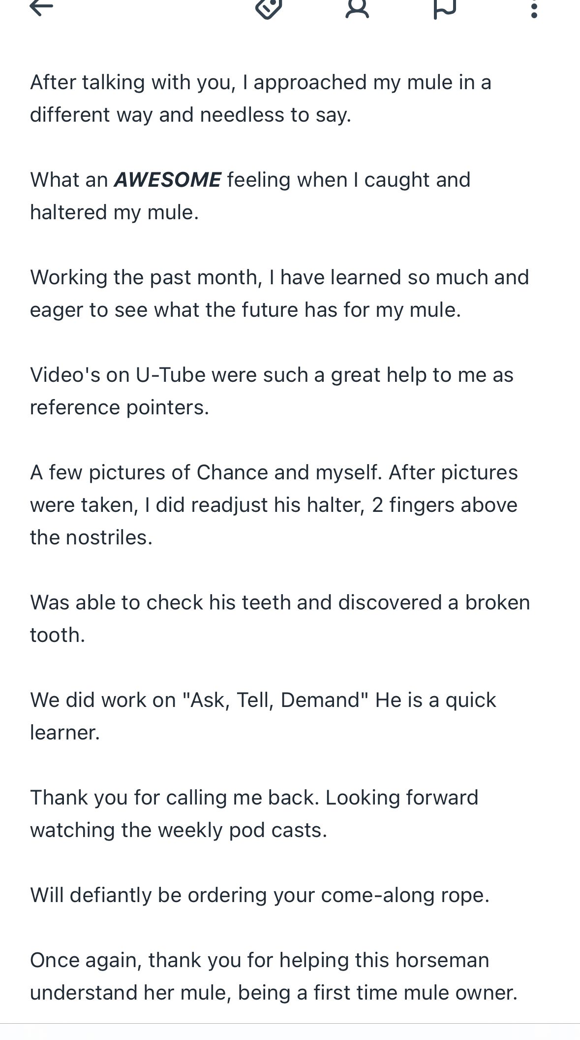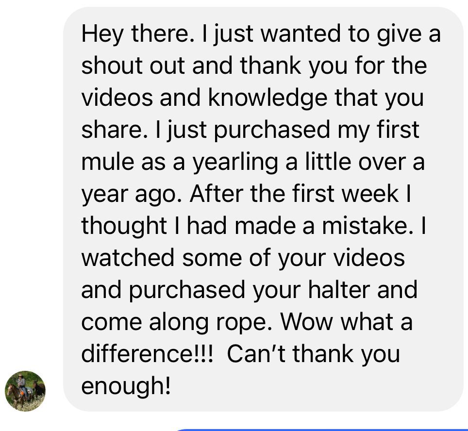 You want to gain trust and get results every time you step into the stall to work with your mule or donkey. We want that for you too and we know it all starts with gaining YOUR trust, first. Below you’ll find reviews and endorsements from our customers.
